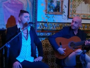 Abriendo el acto el Cañejo, cantaor de Barbate interpretando ‘la Leyenda del tiempo’ con un gusto exquisito, acompañado a la guitarra de Adriano Lozano rodeado de esa atmósfera tan añeja del buen y puro arte que se respira en la Venta de Vargas.