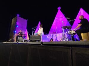 Morente estuvo acompañado por Juan Arance, al teclado , Eduardo Espín a la guitarra y percusión Curro Morente, su sobrino, y Pedro Gabarre «Popo «, gitano de Madrid ,que fue la sorpresa de la noche al cantar un tema trap y también por la «pataita» y baile flamenco en el final de fiesta. Arrancó los aplausos de los asistentes.