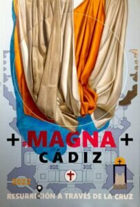 El cartel se compone de paños que, a modo de vestimentas sagradas, intentan lanzar un mensaje litúrgico para cubrir un acto como es «la resurrección a través de la cruz» título de la Procesión Magna del próximo mes de septiembre. Son paños entrelazados con varios colores con distinta simbología: el blanco que respresenta a Dios; el dorado que significa la «Gloria de Dios» y representa la « Gracia y Gloria» de Dios pero también la «Unción», la expresión de la Consagración en sí; y el paño tierra (o lino crudo) que simboliza el Cuerpo de Cristo, el Pan, y en sí representa a la naturaleza humana en su esencia.